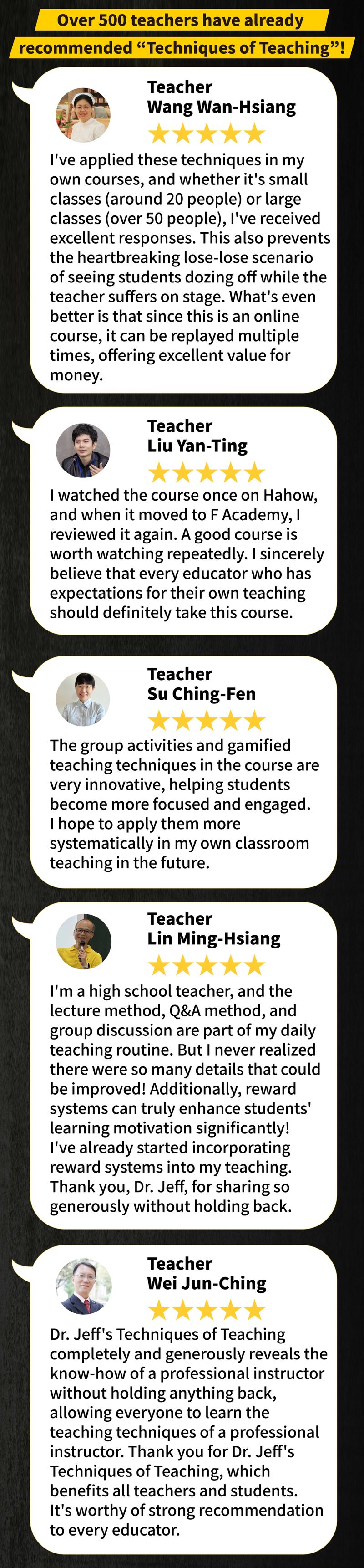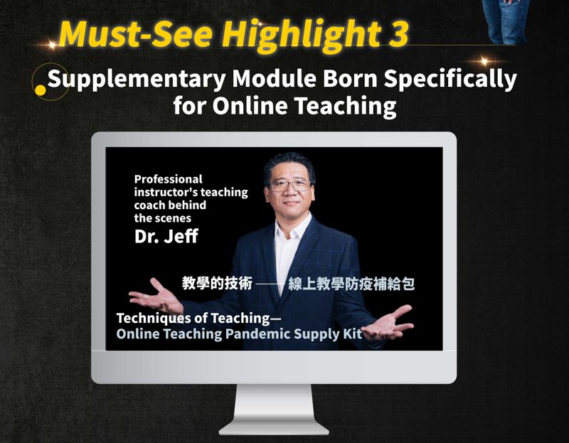 This is the first time domestically that an online course reveals the teaching know-how of top professional instructors. Personally taught by Jeff Wang (Dr. Jeff), author of bestselling books "Techniques of Teaching" and "Presentation Skills," and top corporate trainer.